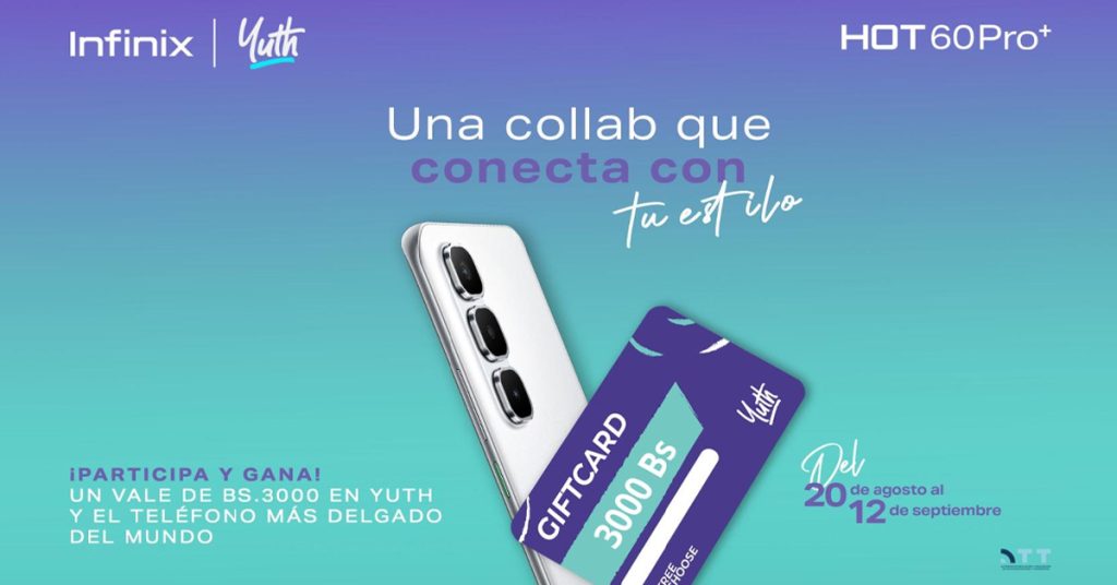Gana el INFINIX Hot 60 Pro+, el smartphone curvo más delgado del mundo, y Bs 3.000 en consumo junto al líder en tecnología móvil y al referente en moda juvenil, uniendo innovación y estilo en esta colaboración.