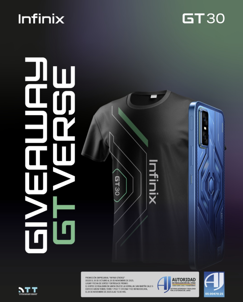 El Infinix GT 30 ya está disponible a nivel nacional a un precio referencial de $227. Además, la marca ofrece un rembolso de Bs. 200 a las primeras personas que adquieran el dispositivo hasta el 28 de noviembre de 2025, bajo autorización de la Autoridad de Fiscalización del Juego (AJ). Para obtener más información, visite: https://www.infinixmobility.com/bo/
