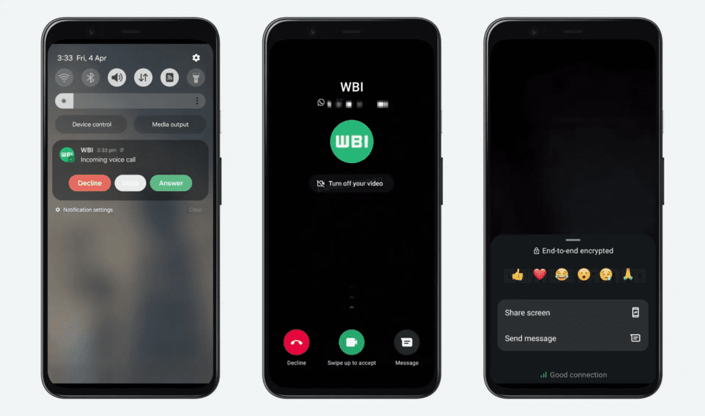 En las videollamadas, la app introduce una opción para contestar con la cámara apagada desde el inicio, una función muy esperada que aporta mayor control y privacidad. Además, se suma la posibilidad de reaccionar con emojis durante la llamada, facilitando la interacción sin interrumpir la conversación, especialmente en llamadas grupales.